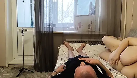 Sulu bir oral seks ile uyurken erkek arkadaşını uyandırır ve onun tüm boşalmasını yutar ve emmeye devam eder.